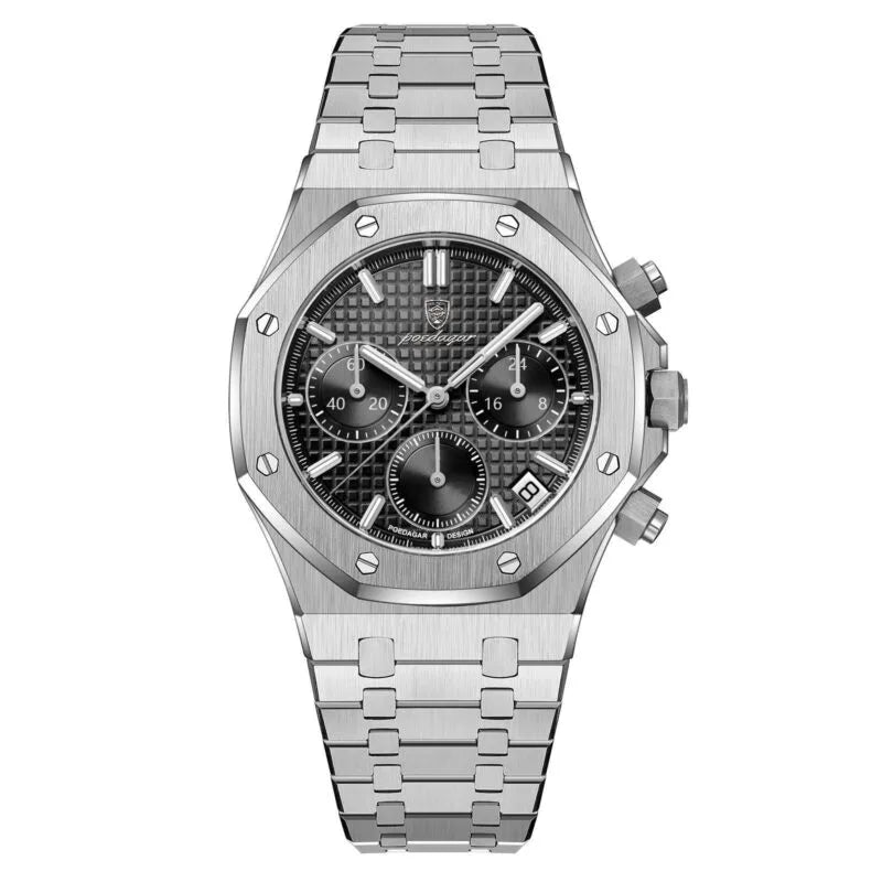 Everything perfect, very nice watch. I had to remove 4 links because it comes with a long strap, but it includes the tool to remove it and it's very easy.